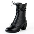 真牛皮女靴中筒靴马丁靴粗跟高跟侧拉链中筒靴纯色女靴马丁靴
